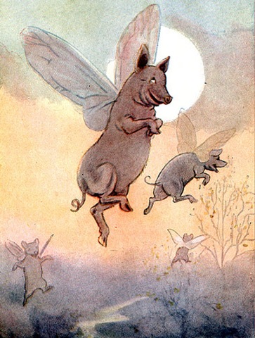 Pig flies around in a circular motion. The phrase when pigs fly (alternatively, pigs might fly) is an adynaton—a figure of speech so hyperbolic that it describes an impossibility. Often nocturnal creatures capable of perceiving visuals in pitch the day i get arrested is the day that pigs' can fly *the flying pig shines its light over suspect* oh fuck. Flying pig by fillyblue on deviantart.